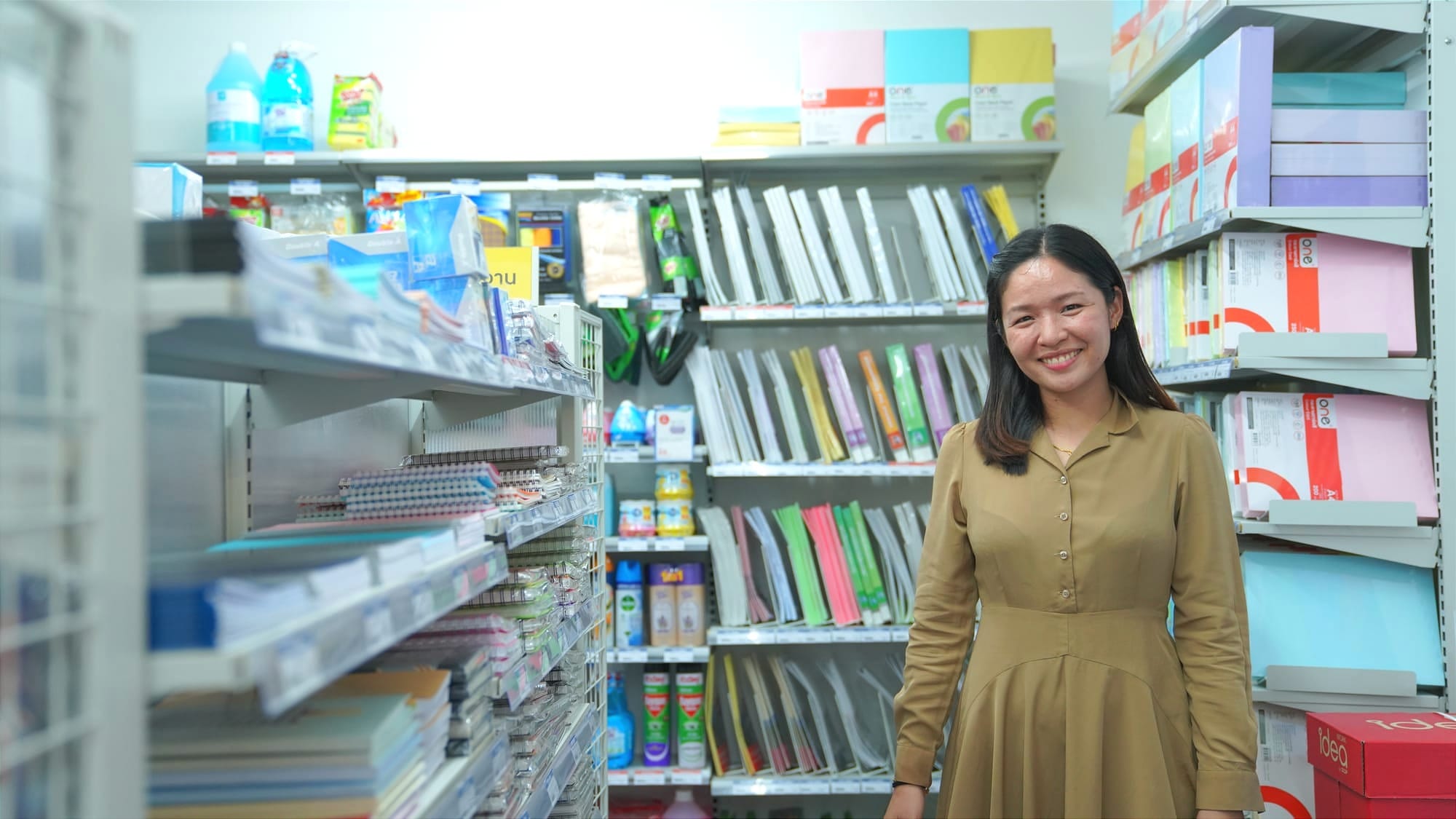 “เหตุผลที่เลือก OfficeMate Plus+ เพราะว่าสำนักงานใหญ่มีการสนับสนุน ประสานงาน การติดต่อภายใน และระบบการจัดการที่มืออาชีพมากๆ ค่ะ และมีสินค้าที่หลากหลาย ช่วยให้เราสามารถตอบโจทย์ลูกค้าได้ทุกกลุ่มเป้าหมาย ทั้งกลุ่มธุรกิจ กลุ่มโรงงาน กลุ่มโรงเรียน โรงพยาบาลค่ะ” — คุณแวน - วราภร อินทร, สาขา ธัญบุรี คลอง 6