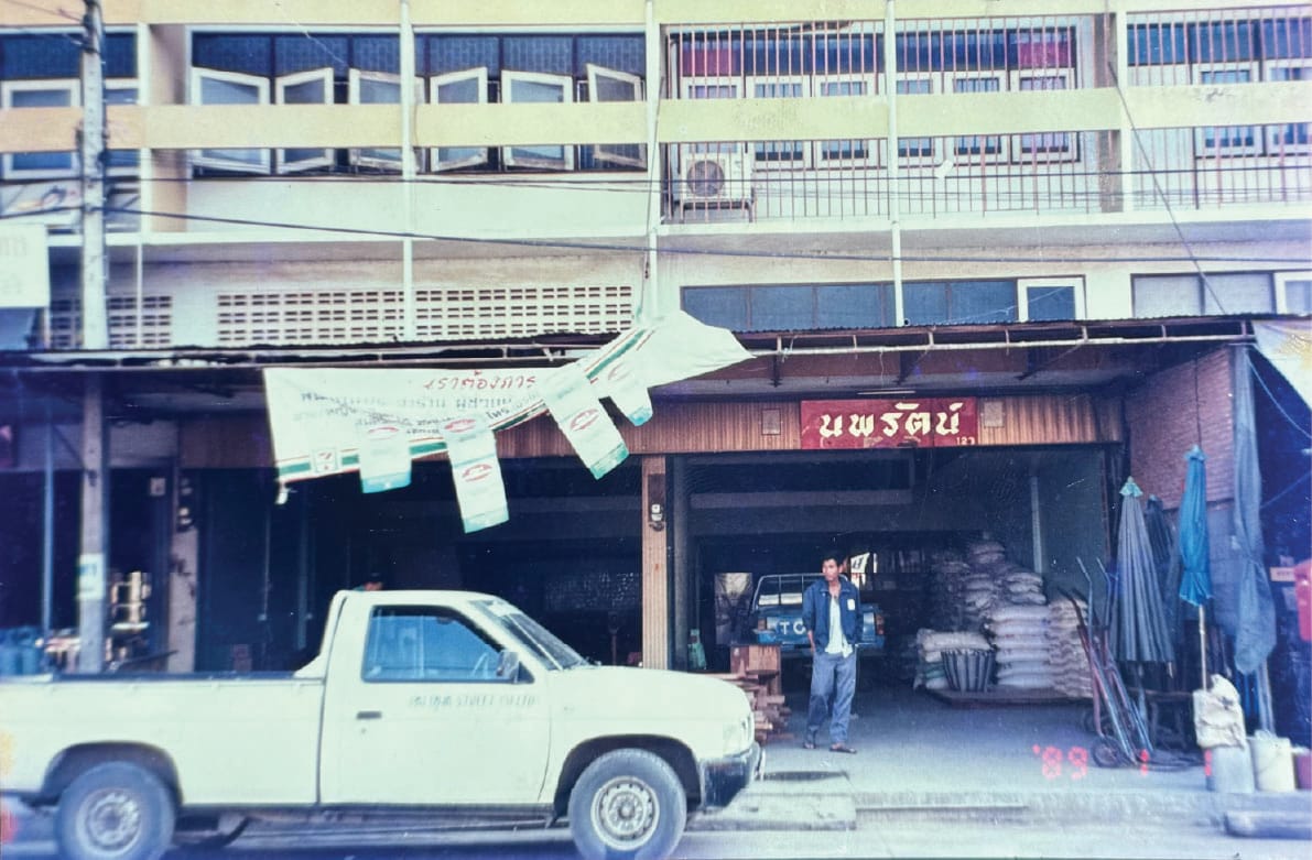 ตอนแรกเราทำโรงงานเล็กๆ อยู่ที่สุพรรณบุรี ทำไปสักพักคิดว่าไม่โอเคกับค่าขนส่ง เลยหาจุดที่ใกล้มาหน่อย แต่ยังกลับสุพรรณบุรีได้สะดวก นนทบุรีเลยเป็นจุดกึ่งกลางที่ลงตัว ตอนแรกเป็นตึกแถวคูหา 3 ห้อง แล้วค่อยๆ เติบโตขึ้นมาด้วยความขยันของอากงและคุณพ่อจนโรงงานผลิตกล่องมั่นคง จึงยุติการทำอาหารสัตว์ไปนับตั้งแต่นั้น”