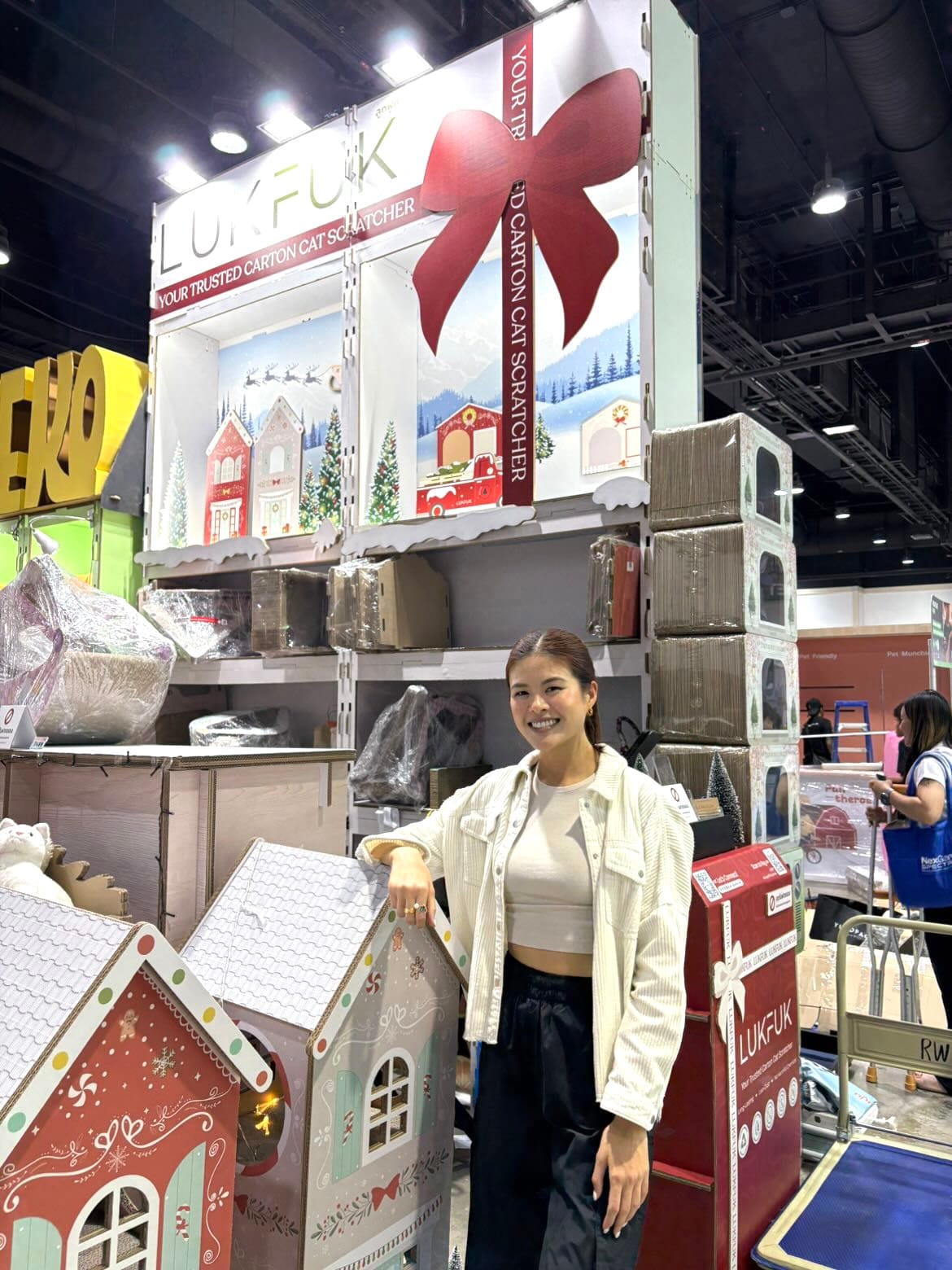 “หลังจากเราทำอีเวนต์กระดาษไปได้สักพัก คุณพ่อเริ่มเห็นแล้วว่าเราต่อยอดมูลค่าวัตถุดิบที่เรามีอยู่ได้จริงๆ เขาก็เริ่มสนใจและเสนอแนะว่า เห็นคนทำที่นอนแมวกระดาษขายทางออนไลน์ เราเองก็เลี้ยงแมวอยู่ด้วย เลยเริ่มจากทำที่ลับเล็บแมวจากกระดาษก่อน ประกอบกับช่วงโควิด ตลาดสัตว์เลี้ยงเติบโตดี เราเลยตัดสินใจขยายธุรกิจมาตรงนี้ด้วย”