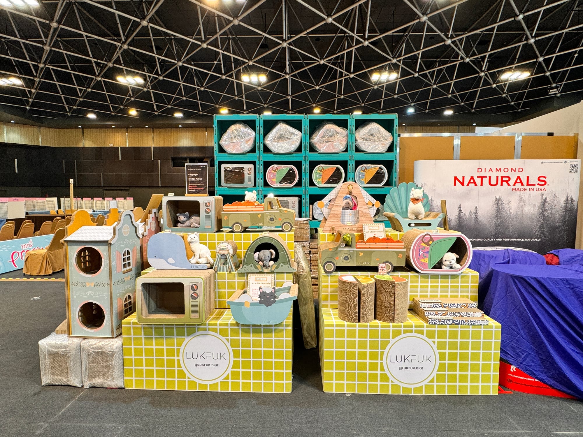 “หลังจากเราทำอีเวนต์กระดาษไปได้สักพัก คุณพ่อเริ่มเห็นแล้วว่าเราต่อยอดมูลค่าวัตถุดิบที่เรามีอยู่ได้จริงๆ เขาก็เริ่มสนใจและเสนอแนะว่า เห็นคนทำที่นอนแมวกระดาษขายทางออนไลน์ เราเองก็เลี้ยงแมวอยู่ด้วย เลยเริ่มจากทำที่ลับเล็บแมวจากกระดาษก่อน ประกอบกับช่วงโควิด ตลาดสัตว์เลี้ยงเติบโตดี เราเลยตัดสินใจขยายธุรกิจมาตรงนี้ด้วย”
